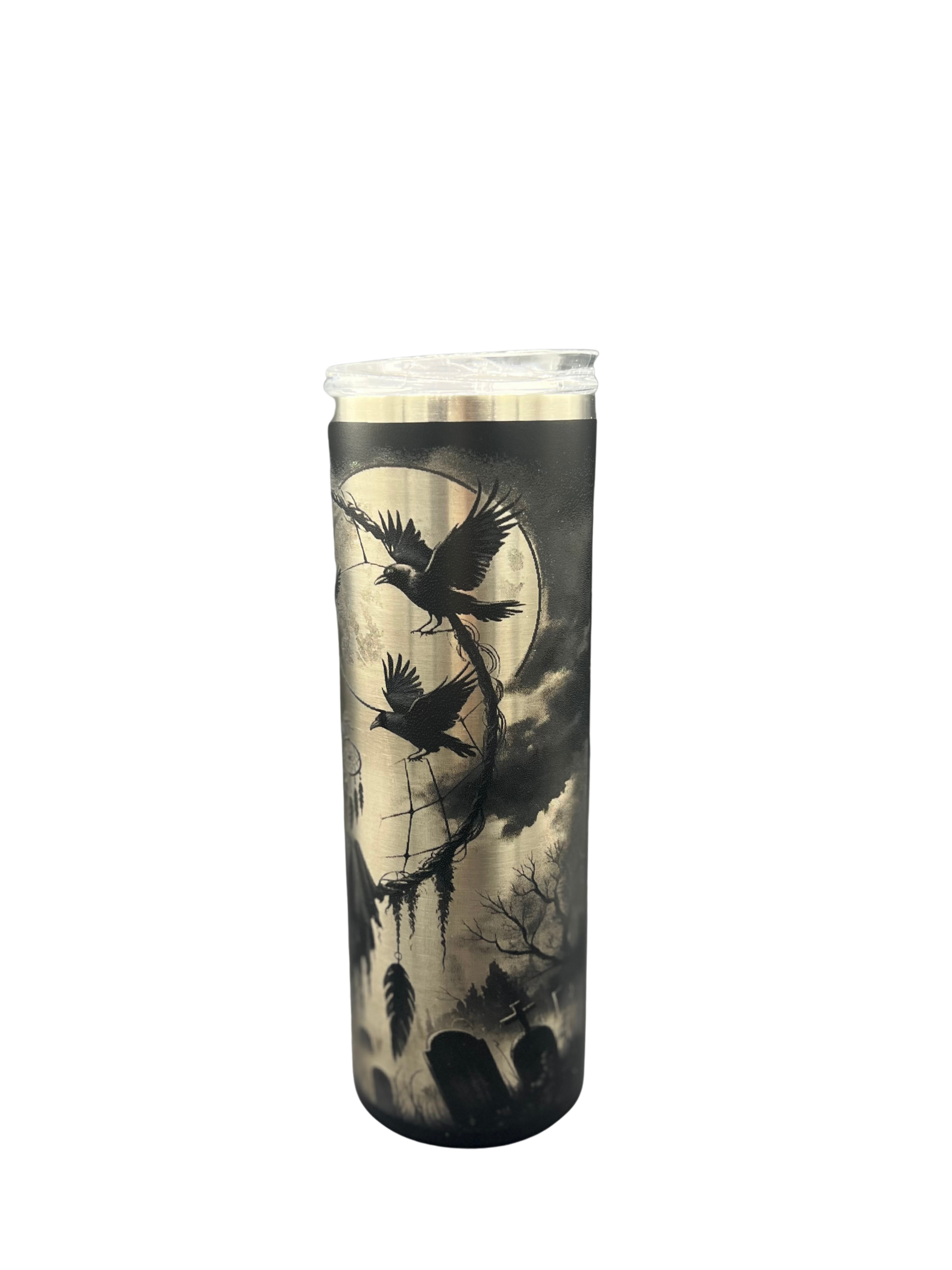 Bring the magic of the forest wherever you go with this Enchanted Forest Fairy Tumbler. Featuring a mystical silhouette of a fairy among trees and woodland shadows, this design is both whimsical and gothic, making it perfect for fantasy lovers, nature enthusiasts, or anyone who enjoys unique art.