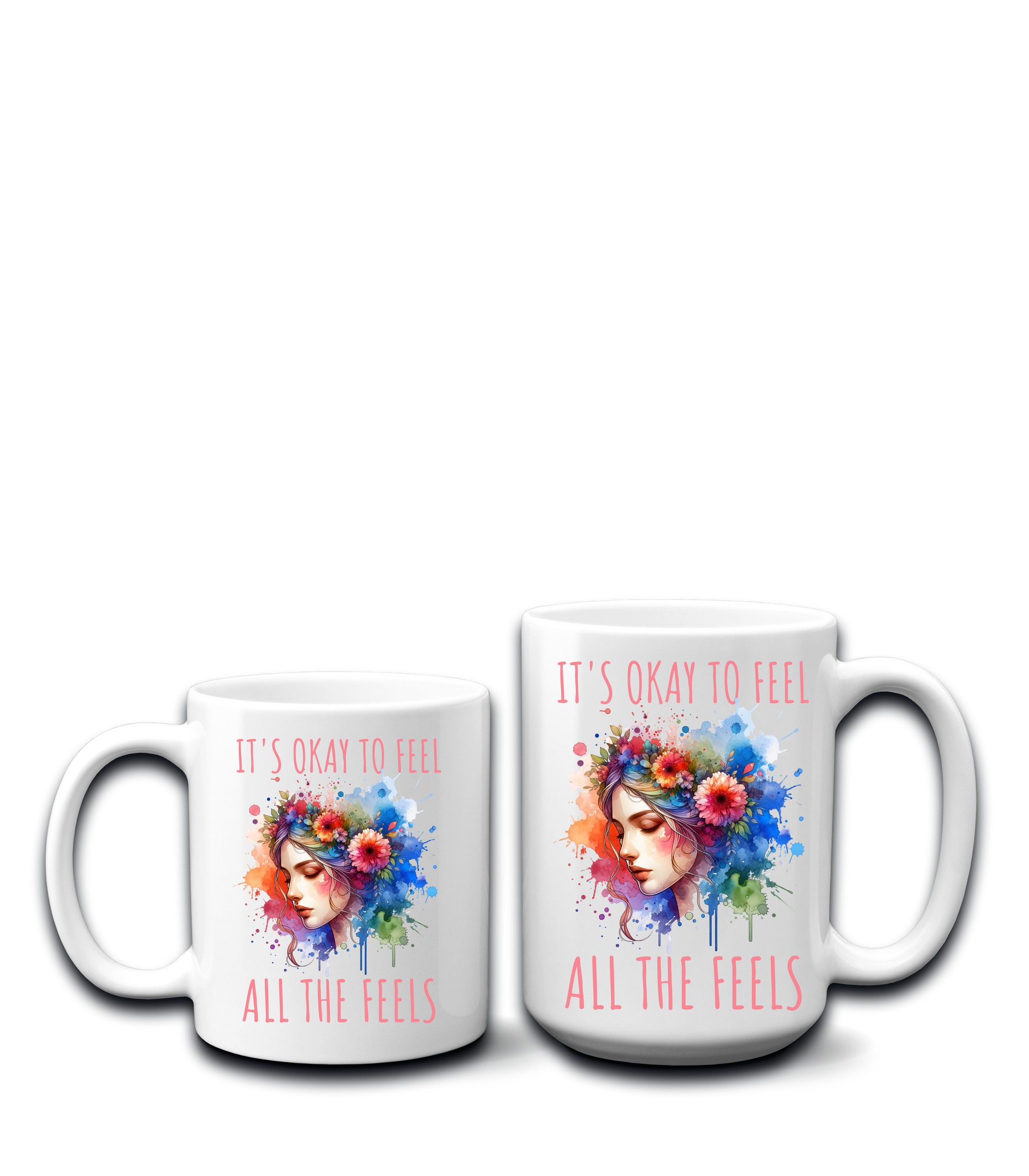 Featuring vibrant watercolor artwork of a woman surrounded by color and emotion, this mug makes the perfect gift for anyone on a journey of healing, self-discovery, or simply trying to be okay.